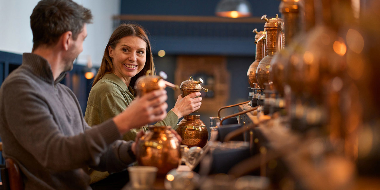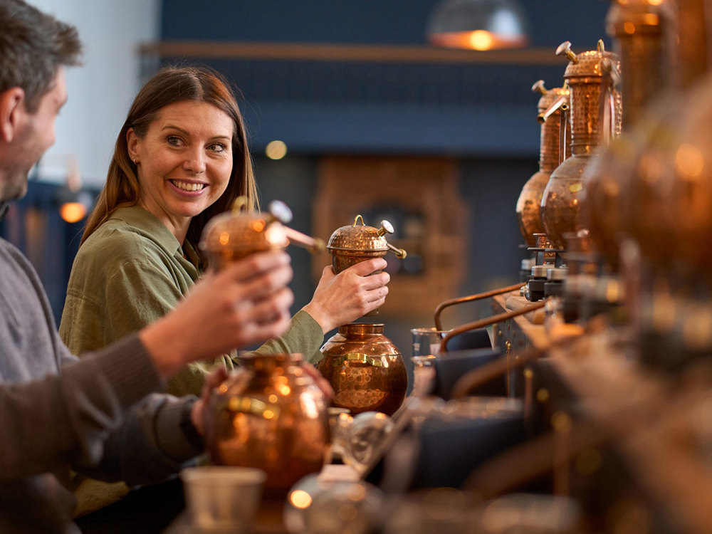 Home to the UK’s largest residential gin school, 1881 Distillery offers an immersive distillery tour and a hands‑on gin‑making experience. Learn more about the gin-making process, meet Felicity, our gleaming copper still, and create a gin that’s uniquely your own.